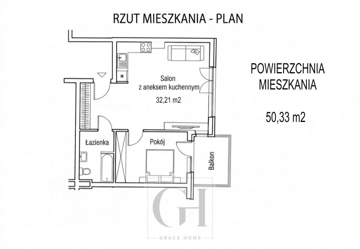 • Przestronny salon z aneksem kuchennym [32,21 m2]